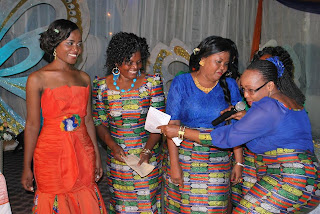 | Mc Sipompapompa akiongoza MC’S wanawake wa chama cha washereheshaji ( SAA) kwenye Sherehe ya Kitchen Party ya Lilian Mwambeleko Iliyofanyiaka Jijini |