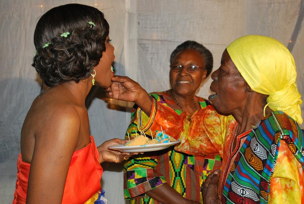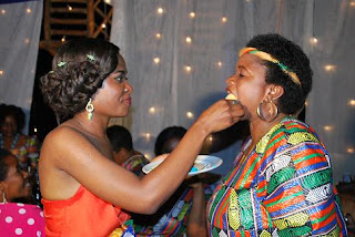 akimlisha Bibi yake Mlezi, Mrs Mashamba wakati wa Kitchen Party yake